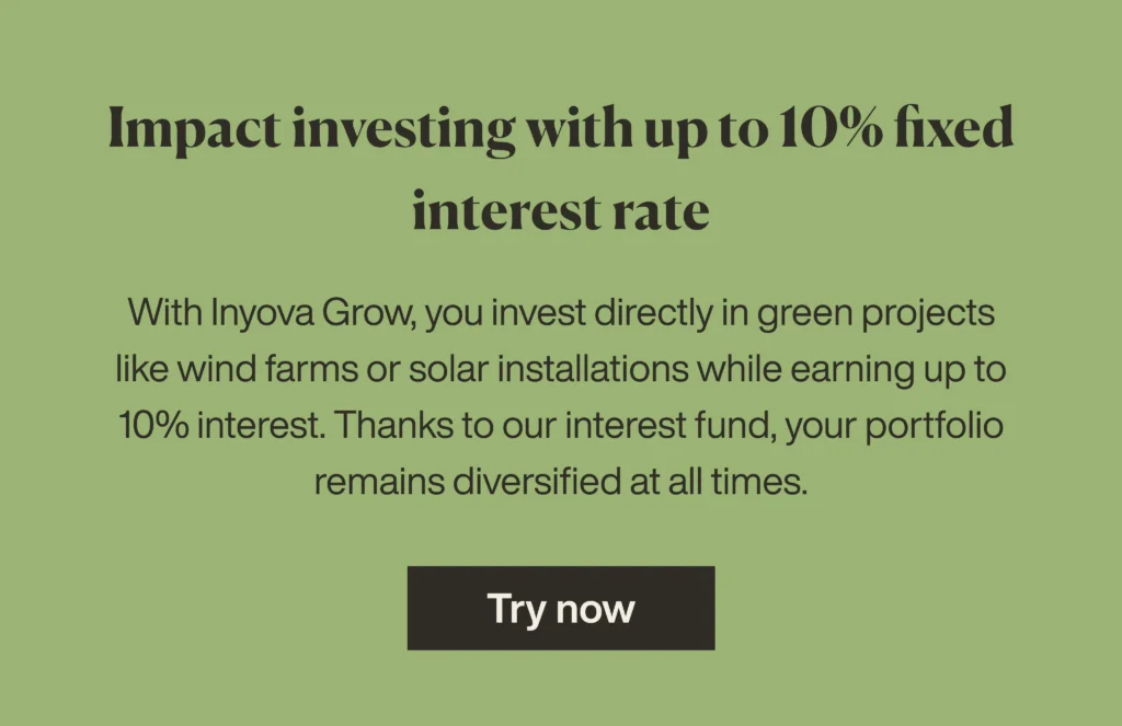 Have you discovered Inyova Grow yet? With our sustainable interest solution, you can invest your money in green projects like wind farms or solar installations, all while earning an annual interest of up to 10%.