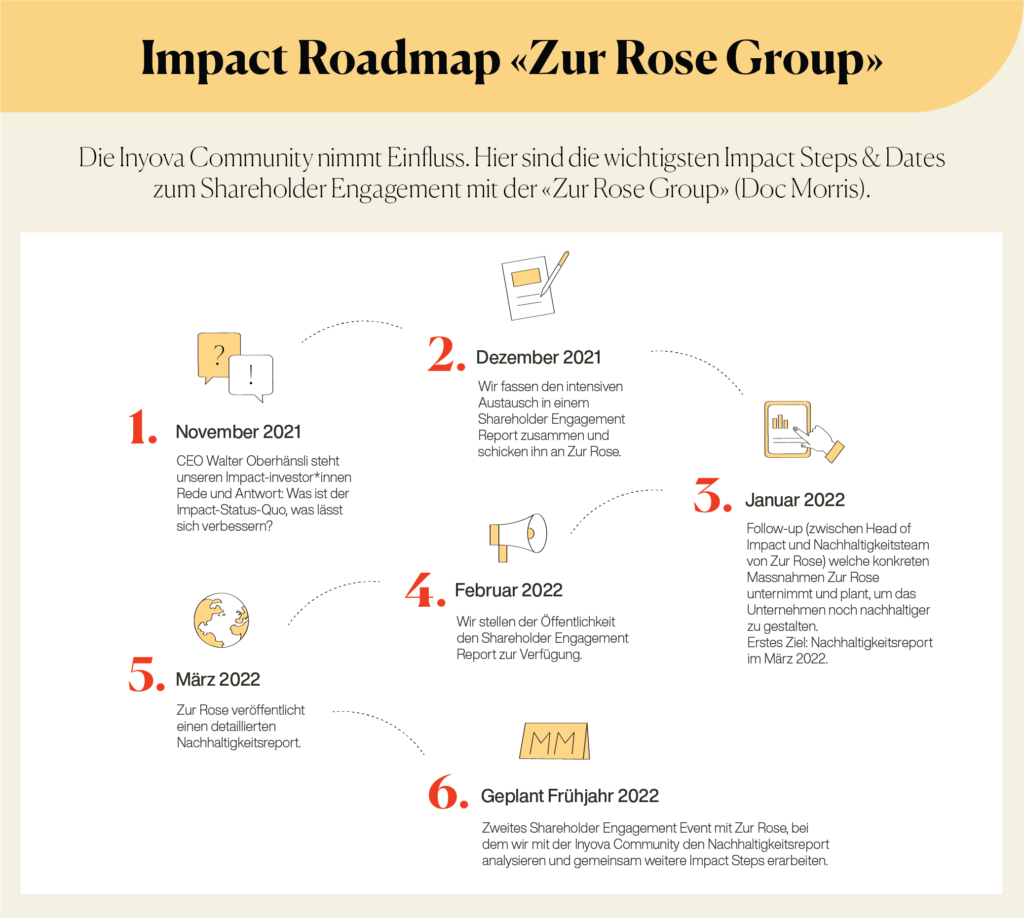 Das Thema Diversität in Führungspositionen liegt der Inyova Impact Community sehr am Herzen. Bei Zur Rose ist im Topmanagement Betül Susamis Unaran die einzige Frau unter acht Männern. Hier wurden unsere Impact-Investor*innen hellhörig und haben nachgefragt, was das Unternehmen hinsichtlich Geschlechtergleichstellung unternimmt. Laut Walter Oberhänsli «strengen sie sich an» mit Massnahmen wie flexiblen Arbeitszeiten und der spezifischen Förderung weiblicher Talente.