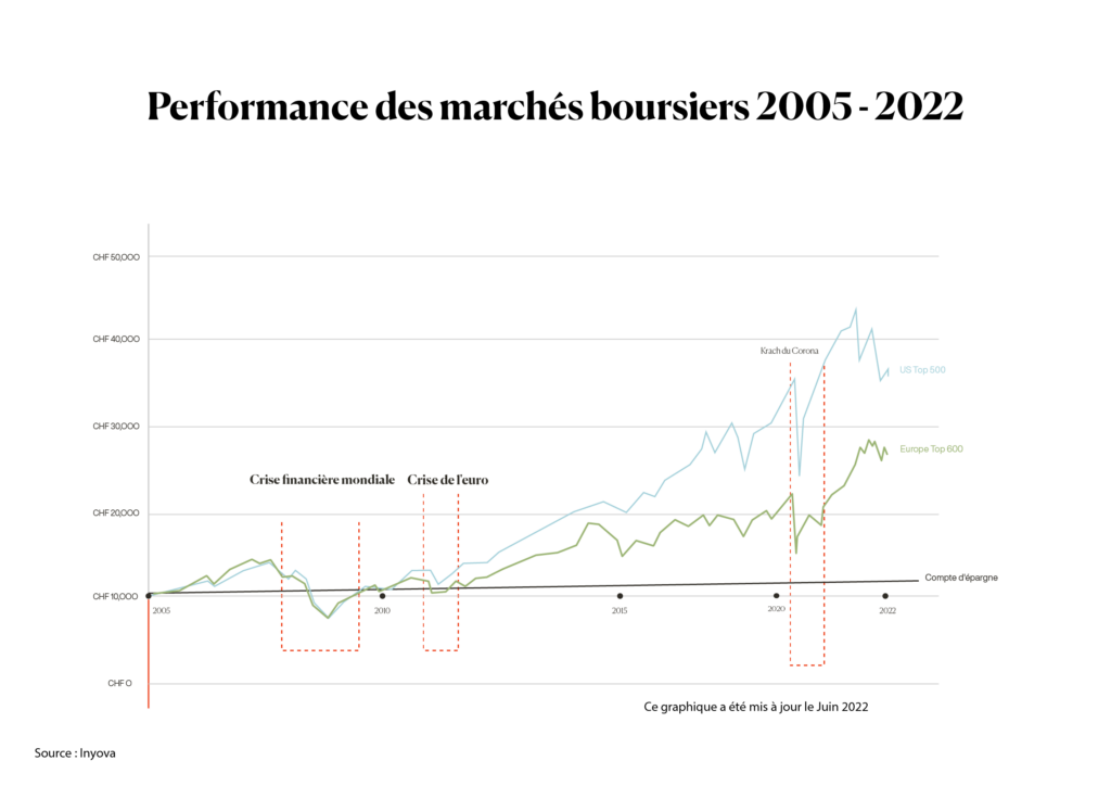 - Les baisses du marché boursier sont normales, surtout en réponse à des événements mondiaux majeurs. Lorsque nous concevons un investissement Inyova, nous le faisons en gardant à l’esprit que des périodes de marché difficiles surviendront à un moment donné, pour une certaine raison. De tels événements se sont produits par le passé, et ils se reproduiront à l’avenir. C’est pourquoi chaque investissement Inyova est conçu pour résister à la volatilité à long terme.
